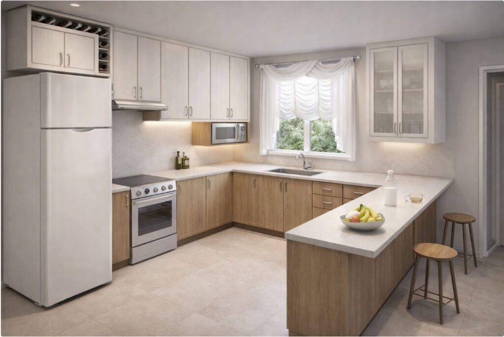 Cozinha planejada desenvolvida com foco em funcionalidade, aproveitamento de espaço e acabamento de alto padrão.